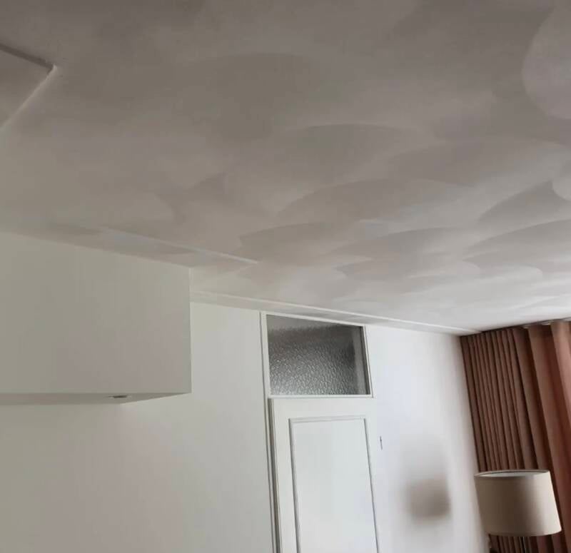 Fijn schuurwerk op het plafond geeft een lichte structuur met een subtiel korrelig effect, waardoor het net wat meer karakter krijgt.